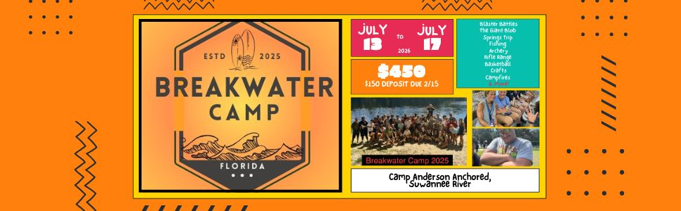 Get ready for an unforgettable summer as we return to Camp Anderson Anchored, right on the beautiful Suwannee River! This week will be packed with exciting adventures, deep friendships, powerful worship, and life-changing teaching to challenge and grow your faith.