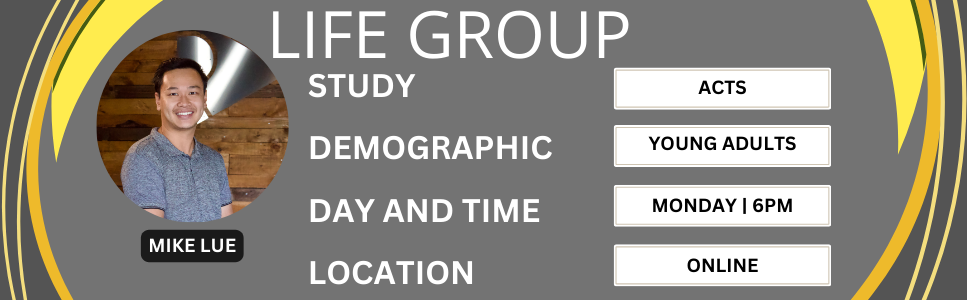 This young adult group meets online every Monday evening. We will be studying the book of Acts together. We meet once a month for live activities together. Join us to do life together!