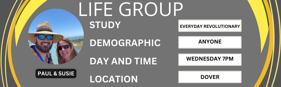 We will meet bi-weekly at our home in Dover on Wednesday nights at 7pm We will be studying together a RightNowMedia study, Everyday Revolutionary. Please fill out this form and click submit.